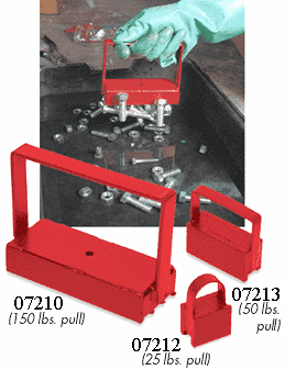 Retrieve iron objects. Remove nails, screws and other iron objects from degreasing and paint tanks. Lift heavy metal objects such as shelving, sheet metal and doors. Use magnets to clean up scattered iron objects such as screws, nuts and