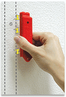 Stud MagnetT is ideal for the home improvement and picture hanging markets. The powerful 4" magnet features super strong neodymium magnets and is permanently magnetized. Stores neatly with a Magnetic ShieldT that prevents it from attracting other tools or nails in a tool box. Stud MagnetT is easy to use and does not depend on batteries or mechanical parts. Simply remove the Magnetic ShieldT and move magnet across the wall's surface until it attracts to the hidden drywall screw or nail where the stud is located. The magnet holds itself in place to mark the location. Use the notched end of the Stud MagnetT to set the nail. Attach a string with a small washer to the opposite end of the Stud MagnetT to create a plumb line for placing additional nails or screws in a straight line. |